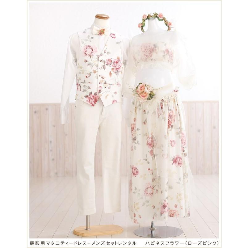 マタニティドレスレンタル 写真撮影用 mt008 メンズペアセット 前撮り 妊婦 小物付き 自宅でマタニティ−フォト 30週前後「ハピネスフラワー(ローズピンク)」