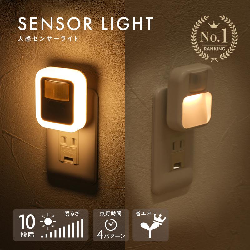【クーポンで更にお得】センサーライト コンセント ライト 2色展開 led 人感センサー ライト 給電式 トイレ 明暗センサー フットライト スポットライト