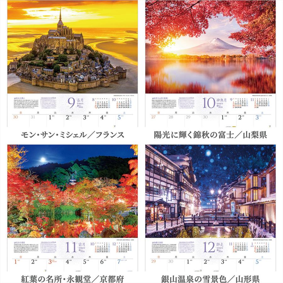 写真工房カレンダー | 風水 2026 カレンダー 壁掛け 開運 風景 【透明ホルダー付 300×420】スマホ壁紙12枚付 YA-26