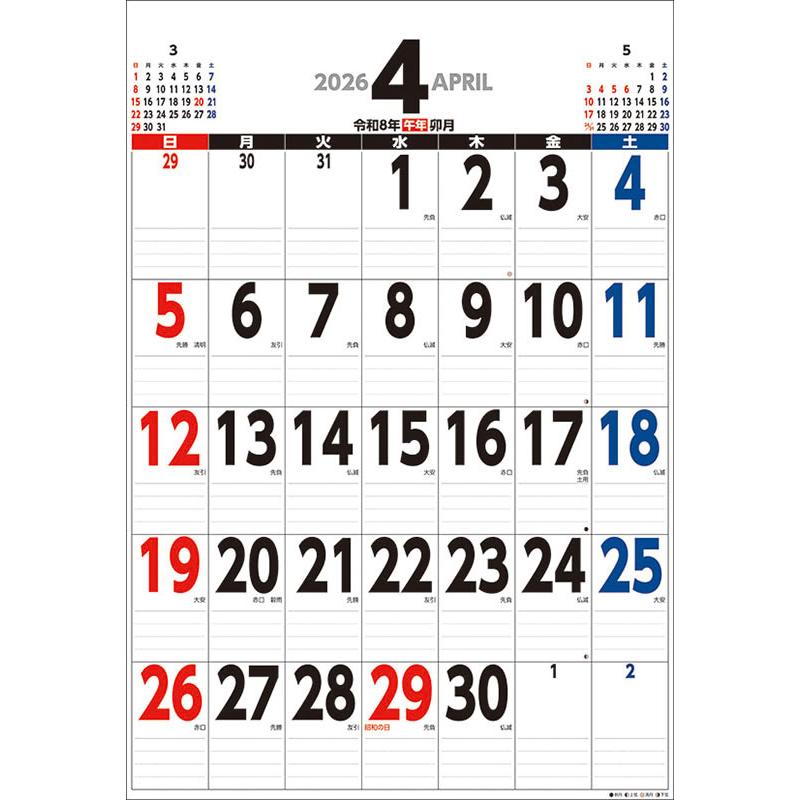 ジャンボ スケジュール B2タテ型 2026年 壁掛けカレンダー CL-640 CL26-640
