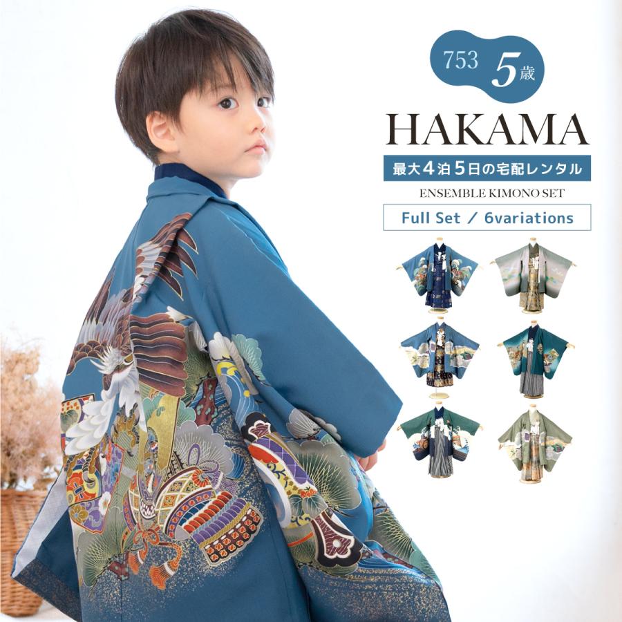 レンタル 七五三 着物 男の子 5歳 羽織袴 袴セット フルセット 青 緑 紺 鷹 兜 宝尽くし 松 着物レンタル 五歳 袴 子供着物 男児 モダン 創美苑