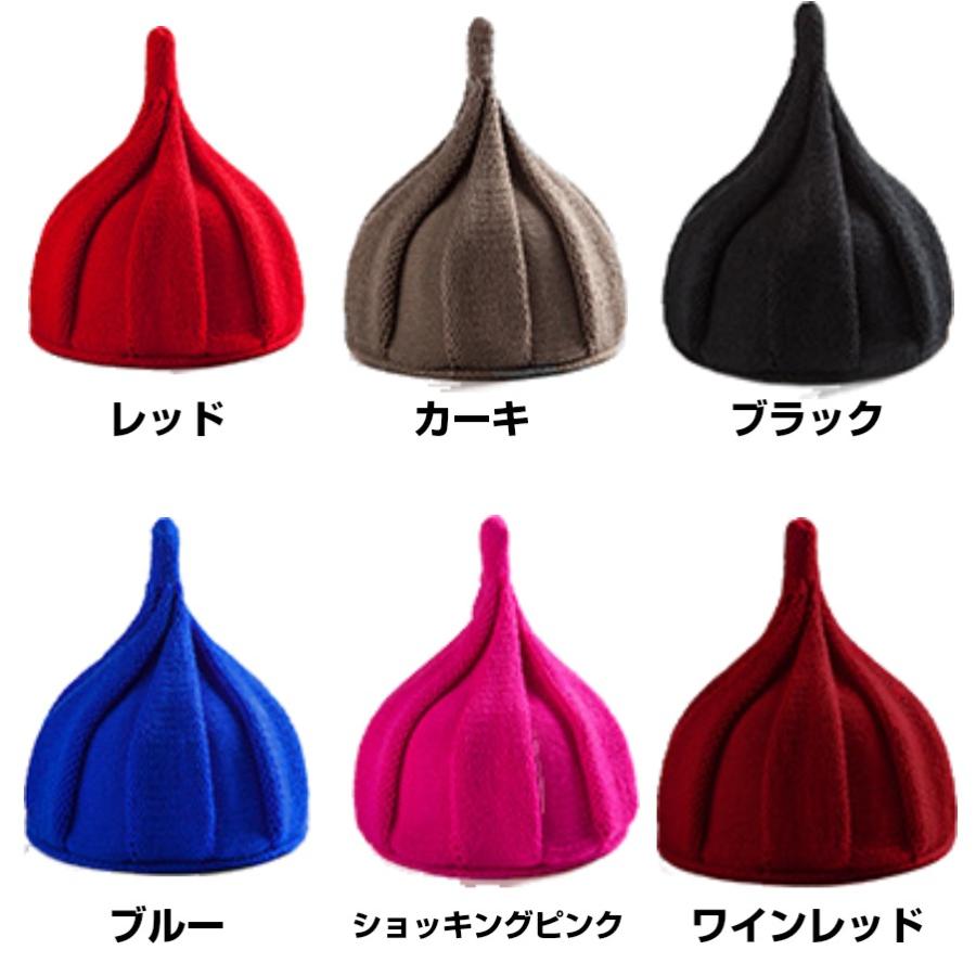 とんがり ニット帽 子供 キッズ 柔らか ニット 帽子 かわいい キャップ レッド カーキ ブラック ブルー ピンク グレー ブラウン ベージュ イエロー 送料無料