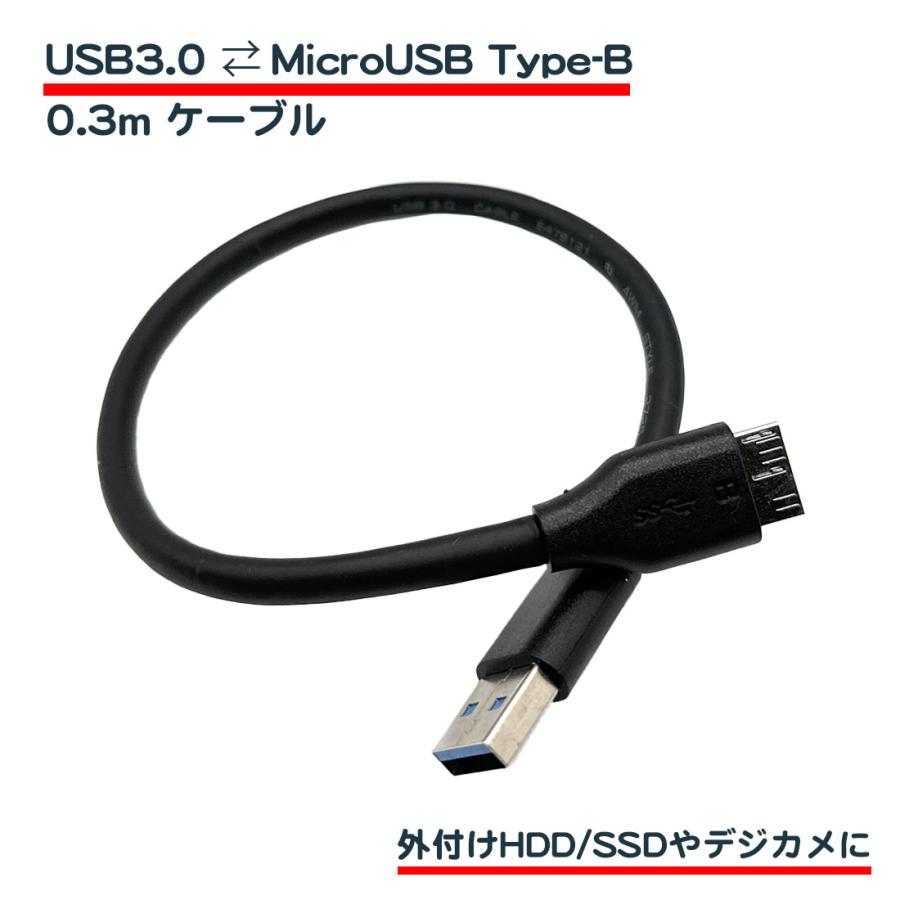 0.3m USB3.0 MicroB3.0 USBケーブル タイプaオス - マイクロタイプb3.0オス 短 ケーブル 外付けHDD SSD BDドライブ カメラ micro USB3.1 USB3.2 5Gbps 送料無料