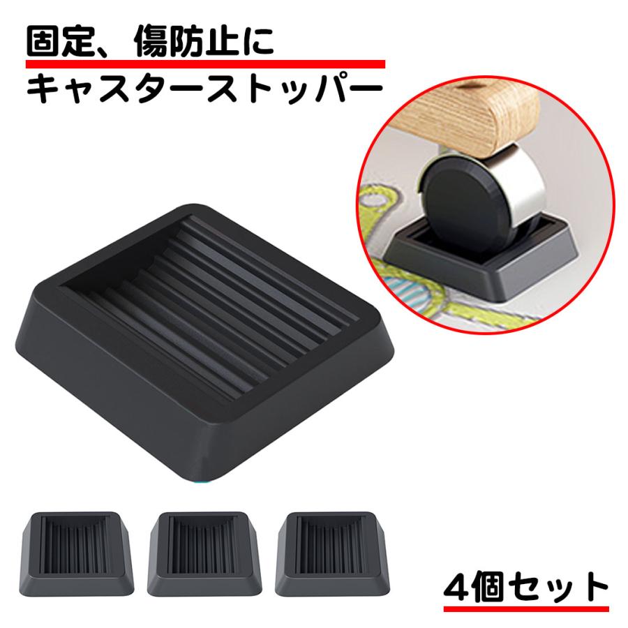 4個セット キャスターストッパー TPU素材 キャスター皿 家具 椅子 台車 ベッド キズ防止 フローリング 固定 滑り止め 車輪止め ブラック ゲーミングチェア 地震