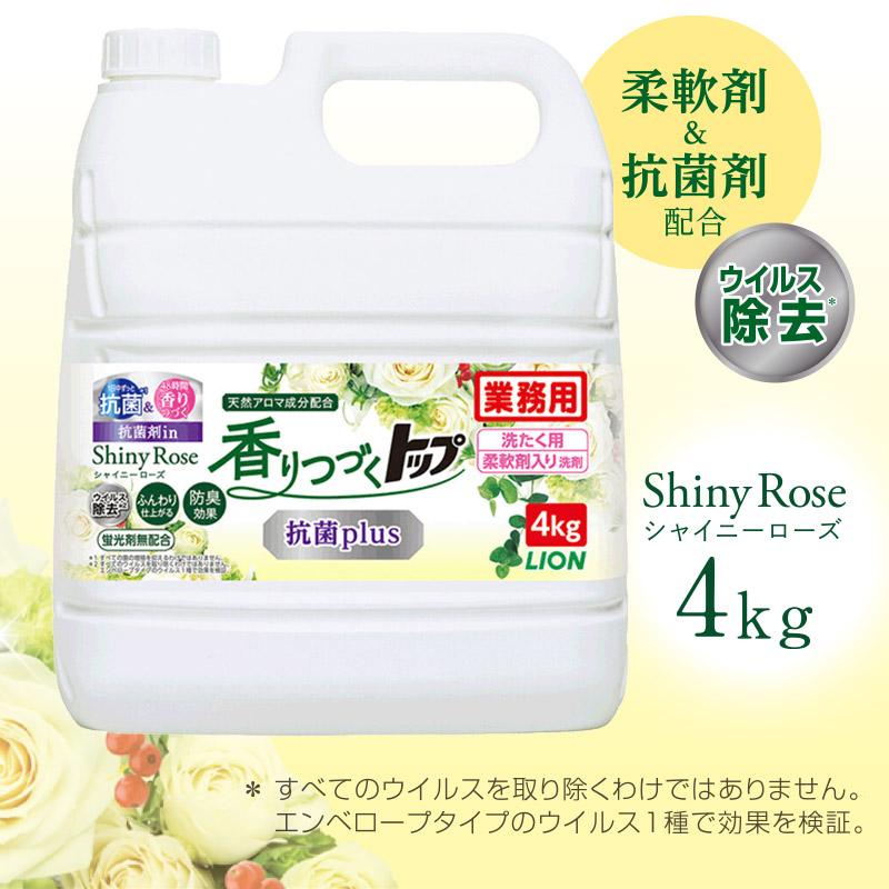 ライオン 香りつづくトップ 抗菌plus 4kg × 3個 1ケース シャイニーローズ 詰め替え 大容量 業務用 つめかえ用 柔軟剤入り コック付き 注ぎ口付き