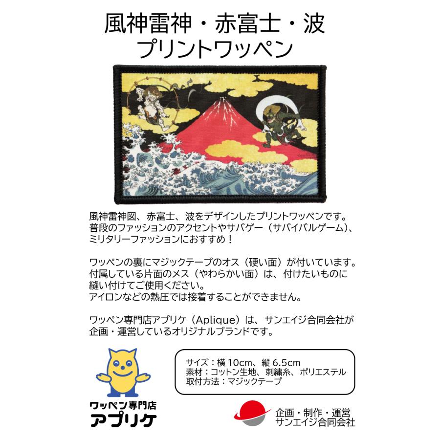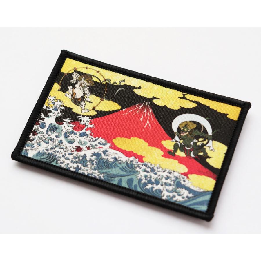 ワッペン 風神雷神 赤富士 波 マジックテープ(ベルクロ・面ファスナー)着脱式 ミリタリー サバゲー 浮世絵・日本画プリント(印刷)パッチ