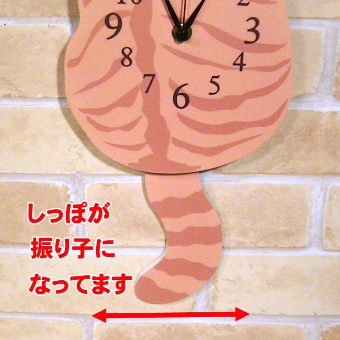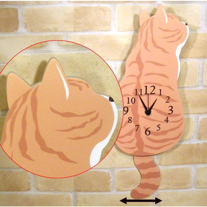 掛け時計 振り子時計 木製 かわいい 茶トラ猫 秒針音なし おしゃれ かけ時計 1011-05 クリスマスプレゼント ギフト
