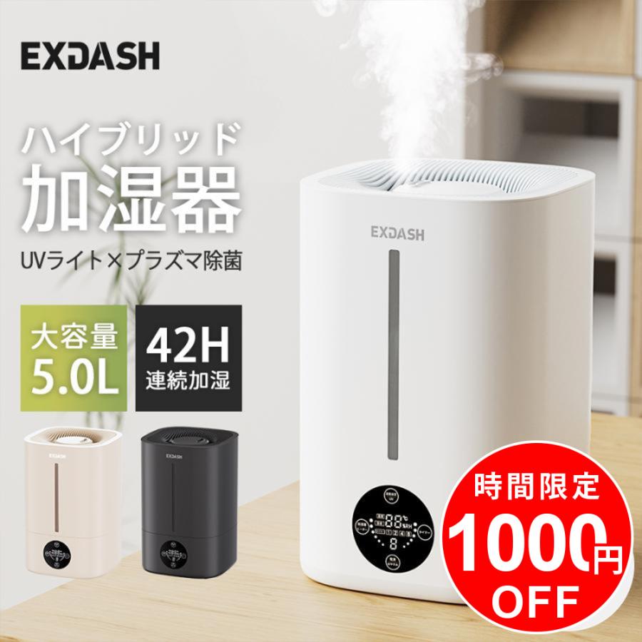 ハイブリッド加湿器 大容量 5L 超音波式 加熱式 最大対応面積35畳 4重除菌 6段階調節 卓上加湿器 上部給水 湿度設定 自動湿度調節 空焚き防止 リモコン付き