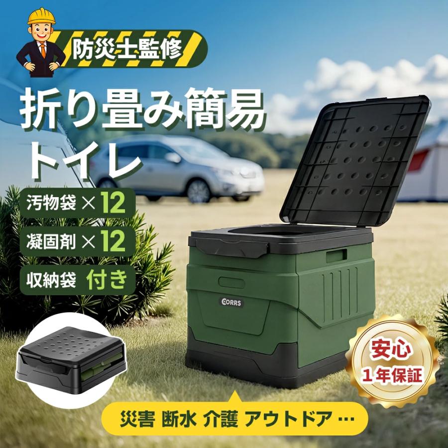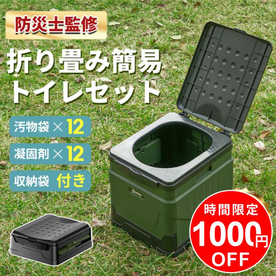 簡易トイレ セット 携帯トイレ 折りたたみ 便座 防災グッズ 緊急トイレ 災害用 介護用 非常用 車中泊 キャンプ 防災 汚物袋12枚付 凝固剤12個付 耐荷重180KG