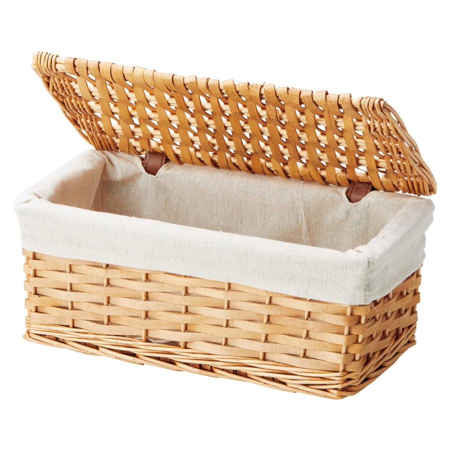 かご 即納可カゴ バスケット 収納 布付 ポプラ ミックス素材 蓋付き 4506NA w34 d17 h15cm