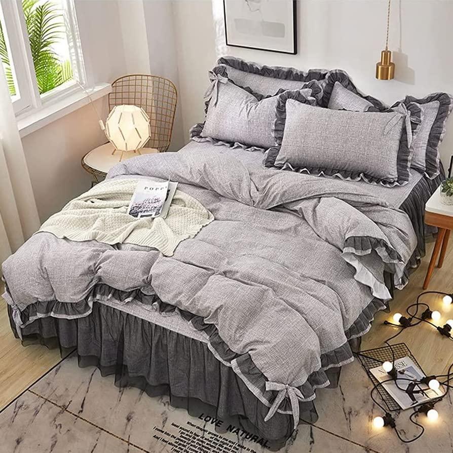 レース フリル 寝具カバー ベッドスカート 布団カバー シングル 3点セット 4点 リボン付き お嬢様 ロマンチック 姫系 可愛い 女の子 女性らしい ピーチスキン加
