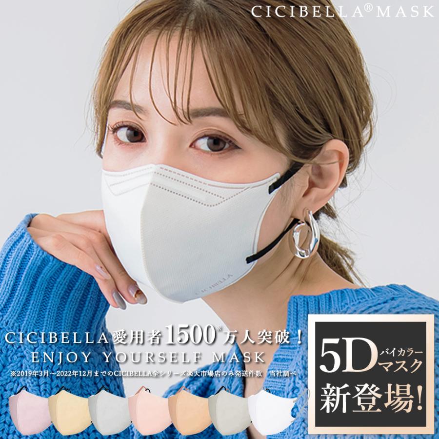 5Dマスク 小顔マスク バイカラーマスク 立体マスク 血色マスク くちばし シシベラ マスク 肌に優しい 20枚 冷感マスク cicibellaマスク