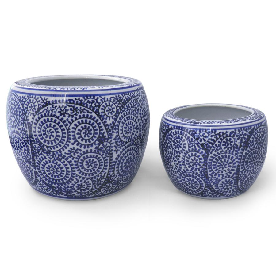 水鉢 睡蓮鉢 陶器 めだか鉢 ハス鉢 青花丸大...