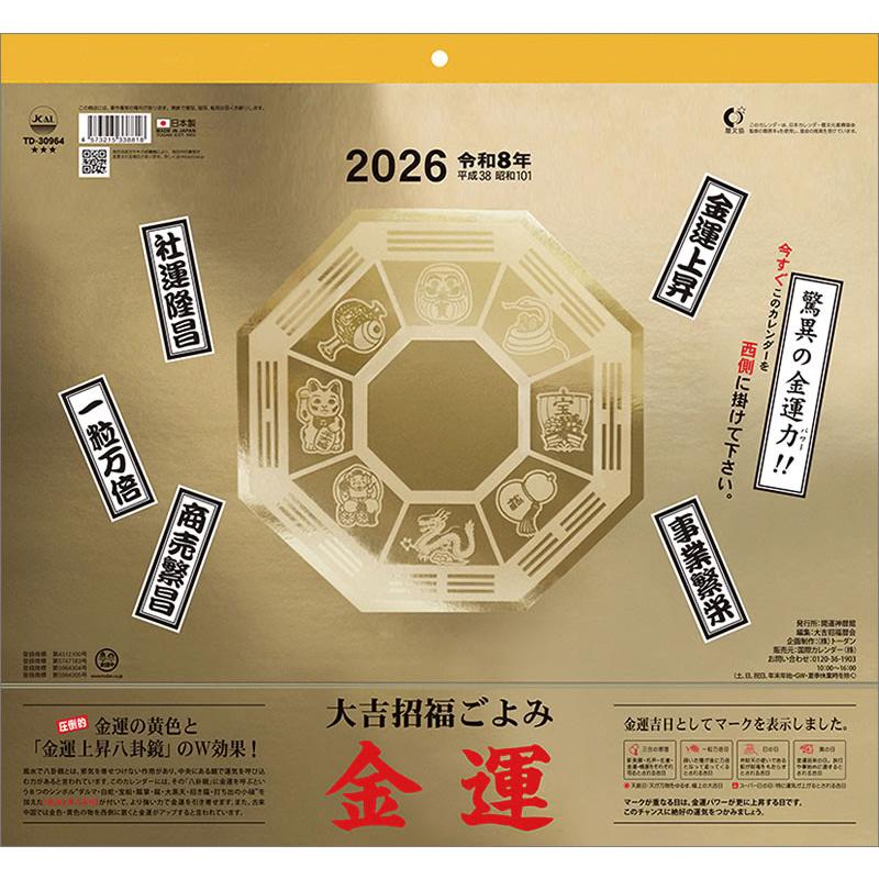 大吉招福ごよみ金運 2026年 壁掛けカレンダー...
